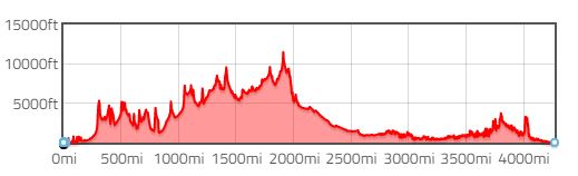 The Trans Am is a self-supported, mind-boggling distance race crossing the USA from Astoria OR, to Yorktown, VA. The race is 4,182 miles long and contains a frightening 165,320 ft of climbing across that distance. The highest passage, outside of Alma CO, goes just under 11,000 feet in elevation. For comparison’s sake, in the Tour De France this year, the highest elevation that occurs is 8,668ft across the Col du Galibier. In that vein, the TDF races 2,220mi in 19 days of racing (with two rest days). Needless to say, Rob’s attempt at beating the record of 17 days 16 hours and 17 minutes is nothing short of a heroic effort.