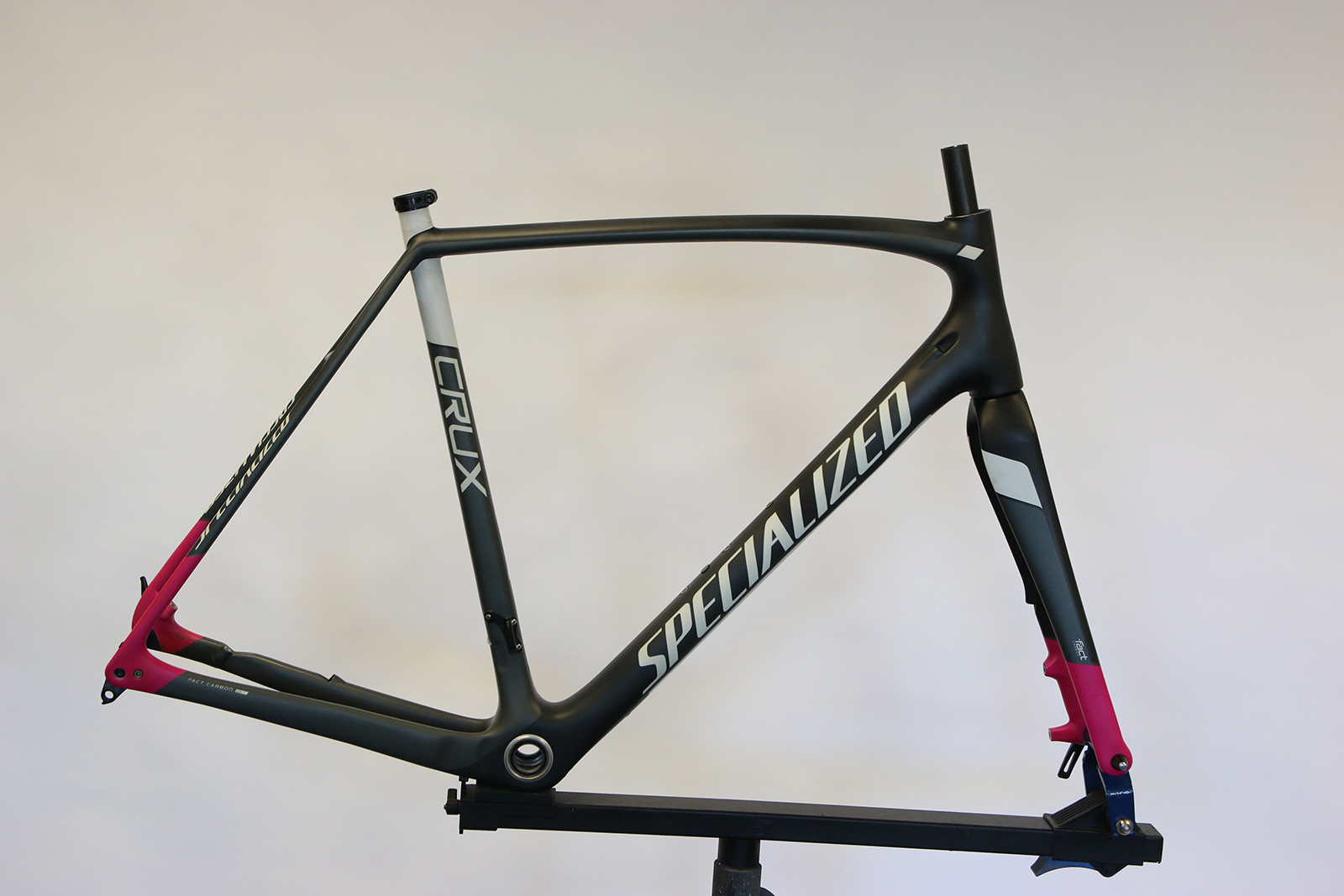 Specialized Crux top tube repair with Back in Black paint scheme