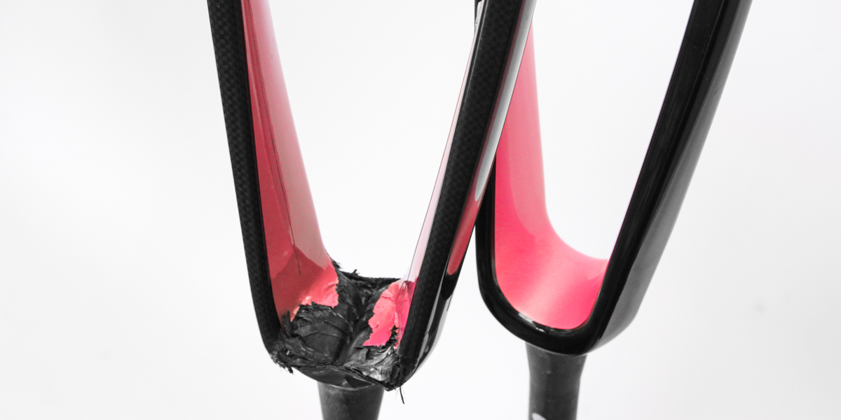 We ended up having to source a brand new fork for the frame, so we contacted Columbus and ordered the exact same frame as the original. We then spent quite a bit of time paint matching the original pink hue and re-applied it to the new fork. All said, our customer made the right call after an accident. If you’re involved in a crash it is always wise to have your bike professionally scanned. It was unfortunate that the fork shattered, but we’re always more than happy to help source new ones and paint them to match.