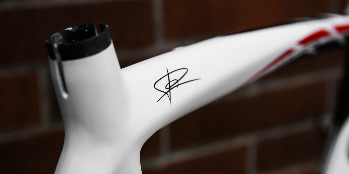 As always, we finish all repairs by matching the paint and decals of the original frame. For this repair, we expertly blended white to match the coat on this Paris and left some aesthetic weave sticking out behind the exactly replicated decals of the frame. Roof rack accidents don’t have to ruin your frame! Get in touch with us today for a safe and scientific repair…you’ll thank us tomorrow.